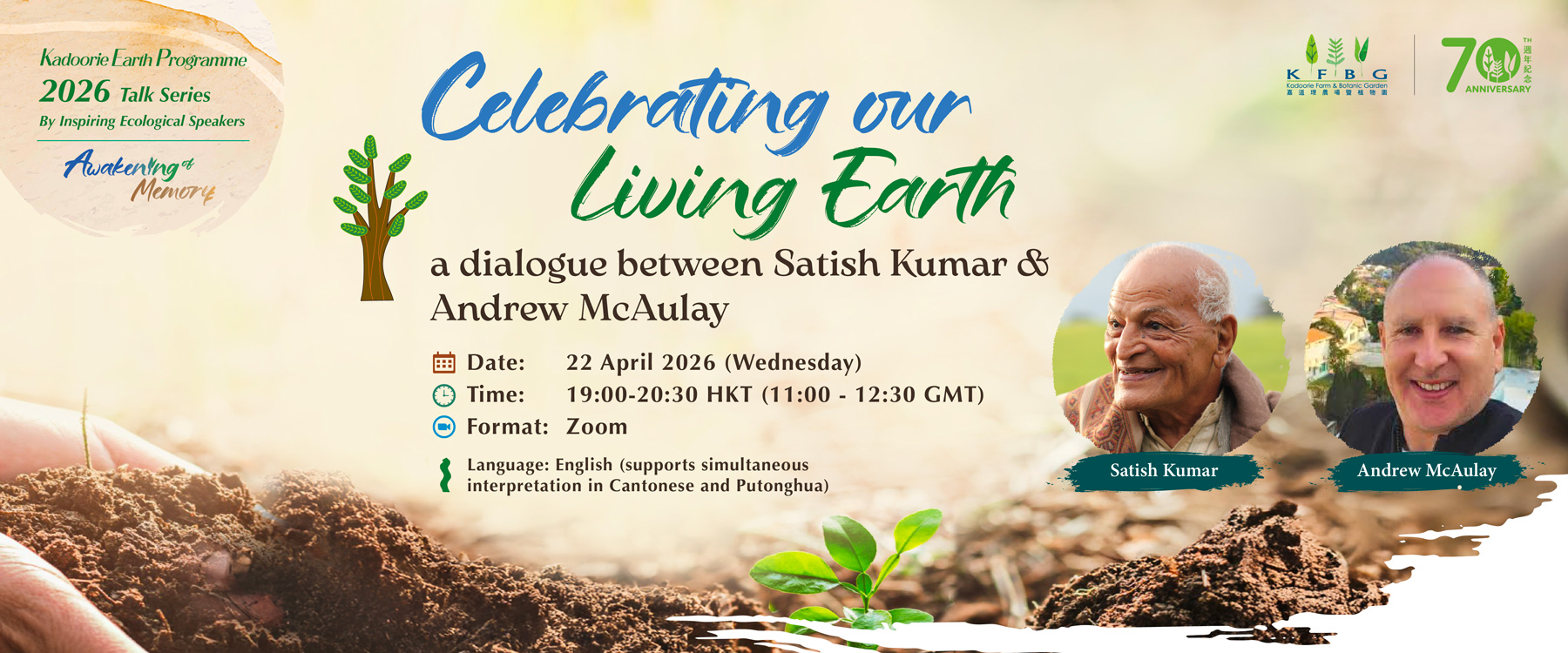 Across cultures and traditions, sacred natural sites have long been recognised as places of connection – spaces where nature, spirit and human presence meet, and where memory is held and renewed. At the heart of KFBG lies Kwun Yum Shan (KYS), a mountain named after the Goddess of Love and Compassion, long revered as a place of healing, pilgrimage and quiet transformation. In this talk, Satish Kumar, life-long Earth Pilgrim, and Andrew McAulay, Chairman of KFBG, explore how the relationship with sacred landscapes such as this can awaken a deeper sense of belonging and responsibility within the Earth community.