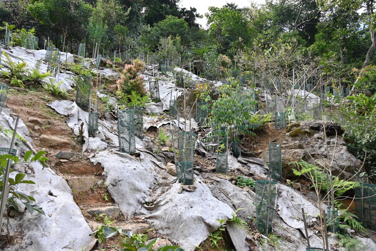 This site is one of KFBG's ecological enhancement projects. Either side of the Butterfly Path we are reintroducing an extensive range of Hong Kong native plants that have been raised in our nurseries, many now very rare in the wild. By restoring patches of diverse, native forest, we aim to create an environment in which hundreds or thousands of native plants, fungi and animals can flourish, revitalising invaluable ecosystem services in the process. Please pause, breathe deeply and appreciate the view of the valley, the sounds of the stream and the amazing variety of life growing here!