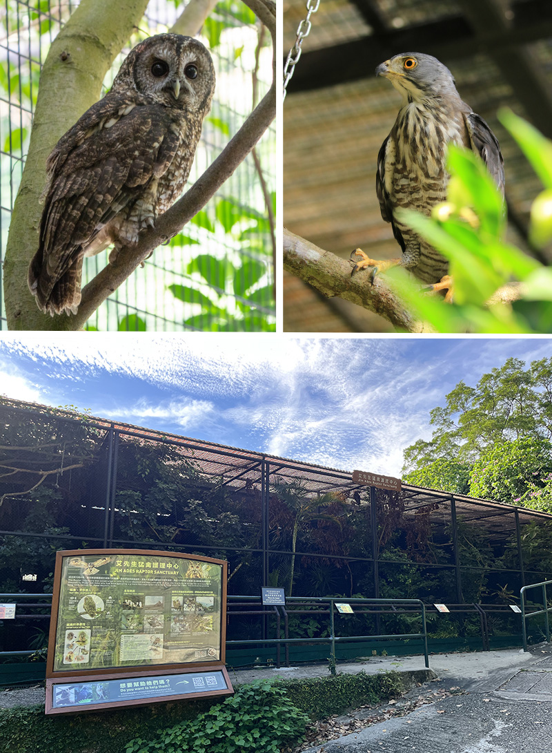 少校艾先生於八十年代設立香港首個獲授權的私營猛禽護理計劃。為延續此項重要工作及進行所需的擴展,本園於1994年建立了猛禽護理中心和推行猛禽復康工作。當時新成立的野生動物拯救中心旨在拯救和治癒傷病的猛禽,並將完全康復的放歸野外。當中傷殘或過於依賴人類而無法野放的獲救猛禽,會留在艾先生猛禽護理中心。牠們有部份非常自在又狀況穩定,足供教育展覽。在2016年,本園在幾個展區進行優化工程,並將以往的貓頭鷹謢理中心與猛禽護理中心合併。歡迎各位蒞臨觀看獲救的猛禽,如麻鷹、鳳頭鷹、普通鵟及貓頭鷹。