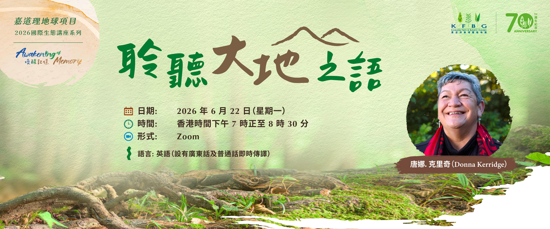 是次講座將帶領我們認真地思考:重新憶起與自然世界的連結,也許正是個人與社群得到療癒的核心因素。