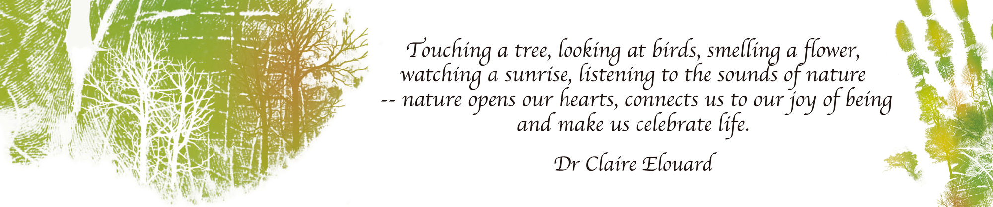 Claire is of French nationality; she spent her early childhood in Senegal, Africa, and later studied in France. She has a master’s degree in biology and a PhD in vegetal ecology from universities in France. She conducted her field research for her PhD in Indonesia, and afterward spent eight years researching forest pathology and ecology in Malaysia and south India. Subsequently, she directed an environmental project in the Mumbai area of India, from 2001 to 2015. She is now developing her workshops on ‘Energy of Nature’.