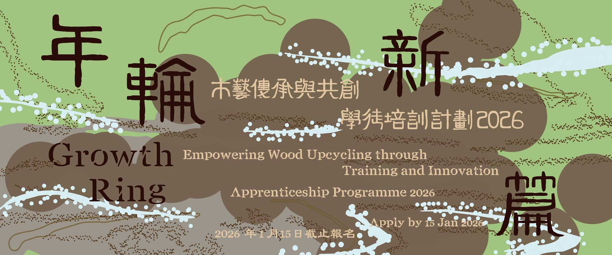 The majority of Hong Kong's vegetation is characterised by secondary forests that have emerged since the Second World War. Many of these areas were planted with non-native species, such as Taiwan Acacia and Slash Pine, as part of post-war rapid greening initiatives. As these trees have aged over the decades, they now present a valuable opportunity to enhance our local ecology by cultivating native species. Our routine tree management involves the pruning and removal of select trees. The timber harvested from these forests bears the unique imprint of our local environment, and rather than viewing this wood as waste, we are committed to its preservation. Through our Wood Recycling Programme, we process the substantial volume of wood generated from our daily operations, repurposing it as an agricultural resource. Larger timber sections are utilised as materials for on-site facilities and nature-based art, and they form the foundation of Growth Ring: Empowering Wood Upcycling through Training and Innovation.