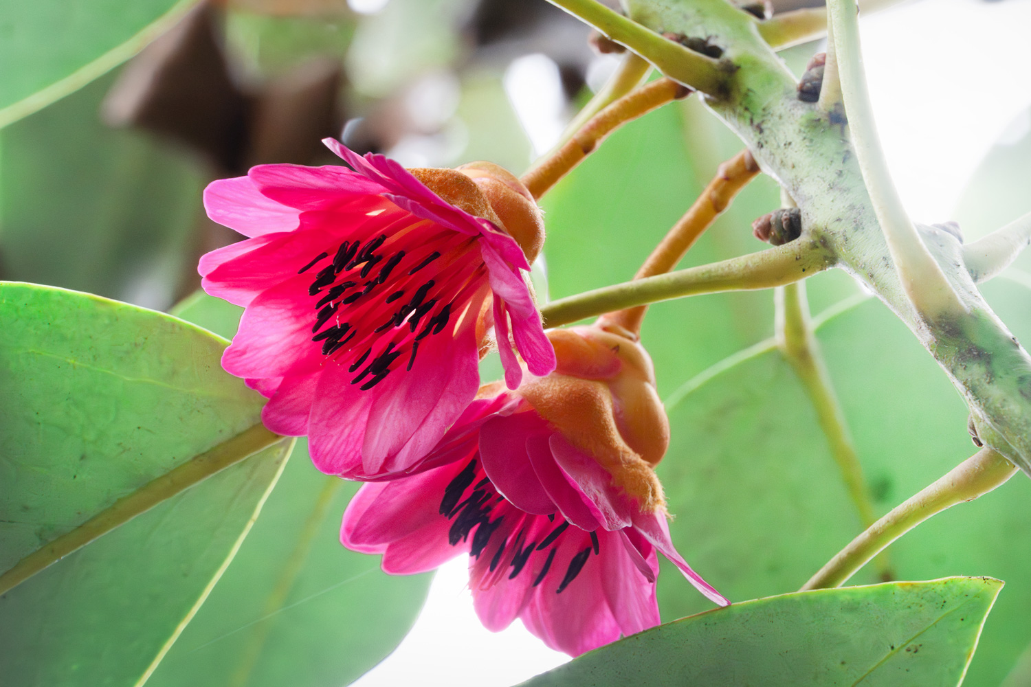 Rhodoleia is listed in Hong Kong's Rare and Precious Plants and rated as Vulnerable (VU). This species is protected under Hong Kong Law, Chapter 96A, the Forestry Regulations. Due to its hanging, bell-like flower clusters and being the species with the largest flowers within its genus, it is called the "King of Handing Bells." There are several wild Rhodoleia trees in KFBG and the blossom period is only a few weeks. Please cherish this rare bloom and seize the opportunity to come and admire it.