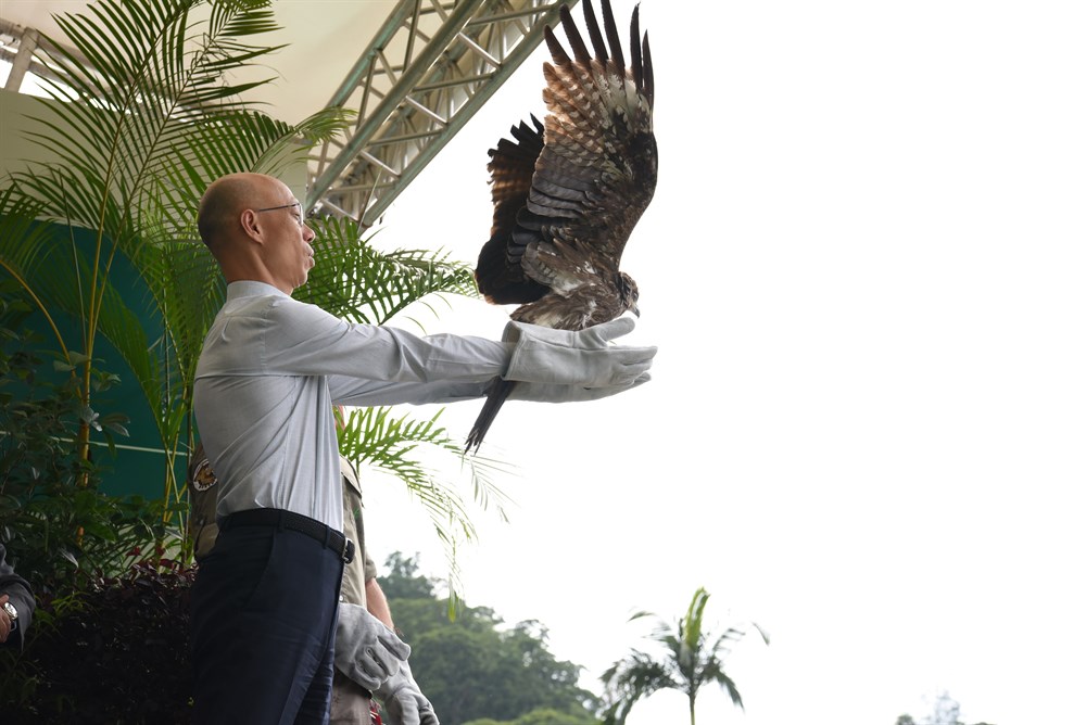 Secretary for the Environment the Hon Wong Kam Sing releases the Black Kite to the nature.