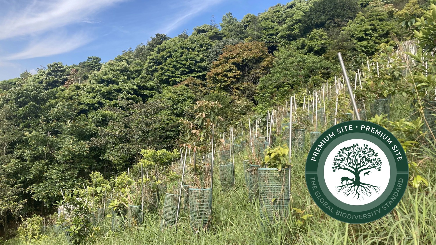 自2013年以來,KFBG採用實驗方法,分析哪些物種最適合一起種植,以及哪些管理措施和環境因素能夠最大幅度地提升生物多樣性。在過去四年裡,此計畫關注多方面的重要生態過程,包括生物量的累積、物種相互的關係、養分循環和抵抗火災的能力等。正是基於本園持續研究這些生態議題,以及對相關社會、制度和經濟方面的關注,讓TGBS的評估人員留下了深刻印象。 TGBS是一個獨立、科學嚴謹的認證體系,表彰致力於提升生物多樣性的項目,於2024年在聯合國氣候變遷大會(COP16)上正式啟動。KFBG的森林復育計劃的評估結果為9.3分(滿分10分),是迄今為止全球所有申請計畫中最高分的項目,這使得KFBG獲得了TGBS三個等級中的最高等級——頂級認證。其他計畫所在地點包括拉丁美洲、印度和非洲,例如烏干達的卡森尼恩(Kasenene,音譯)和尼揚通齊 (Nyantonzi ,音譯),珍古德研究所(Jane Goodall Institute )正在當地修復一條對保護黑猩猩至關重要的森林走廊。